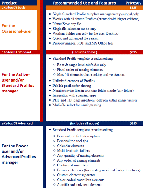 Compare Editions - eXadox DT